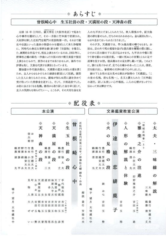本公演 演目 「曽根崎心中」